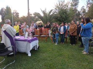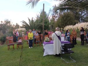 La belleza del jardín de la casa de Humilde Galdames, ofreció un remanso de paz y tranquilidad a quienes escucharon la palabra del diácono, quien recordó a Francisco Galdames, Fernando Osses, Rosita Osses y Marcela Moya, de Puente Alto; Marjorie Quinteros de Pulmodón; Osvaldo Astaburuaga de Santa Teresa y Carmen Rodríguez de Itahue.