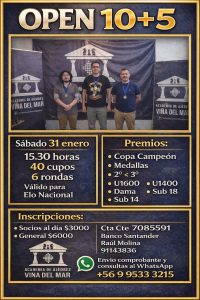 El cupo es de 40 jugadores, y pueden inscribirse maestros de cualquier club federado (más información en el Instagram @clubacademiaajedrez o al whatsapp +569 95333215).